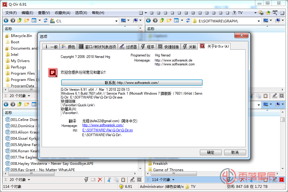 1.打开Q-dir出现的四个窗口,不同盘中在同一个窗口访问多个文件夹针,对文件加中的内容进行复制、粘贴、修改、移动等操作